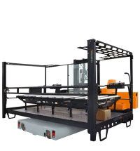 Bei dem Handling von Glas können einzelne Scheiben bis 40 mm dicke oder ganze Glaspakete in den Abmessungen bis 8000 mm Länge und bis 3600 mm Höhe und bis zur 400 mm Paketdicke transportiert werden.